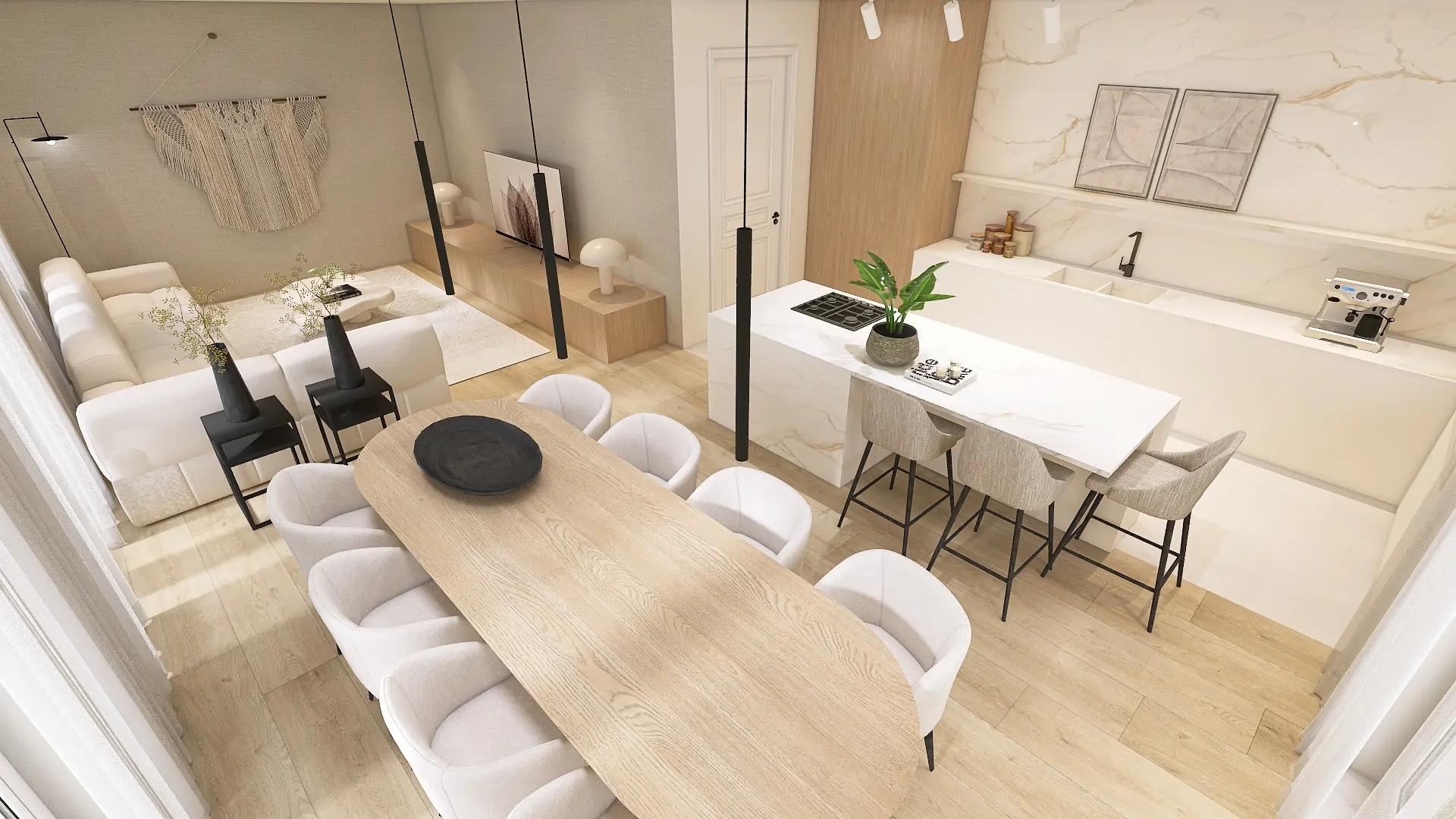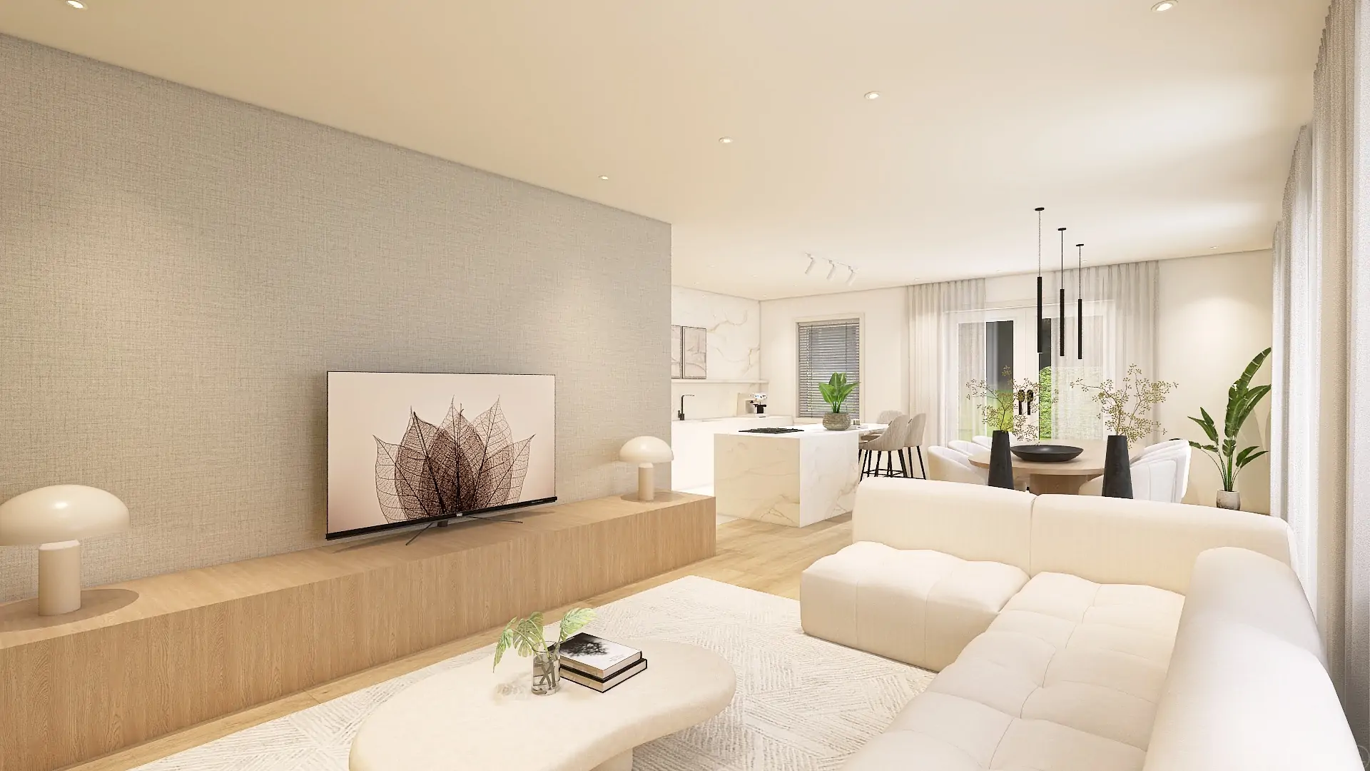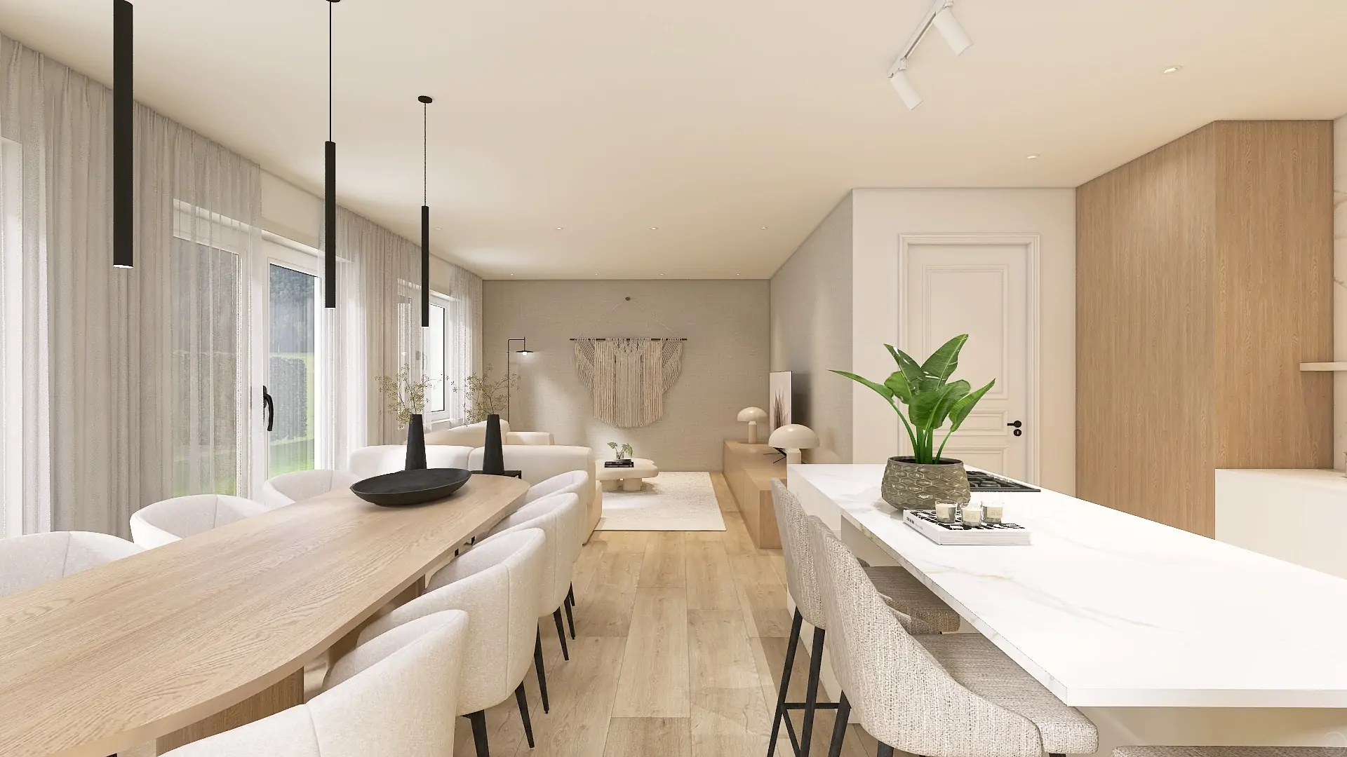 Betaalbaar interieurontwerp 3D eensgezinswoning - woonkeuken ontwerp - Forme - Jesper - Richmond Interiors - Sevn - Arte Wallcovering - Hometolife3D