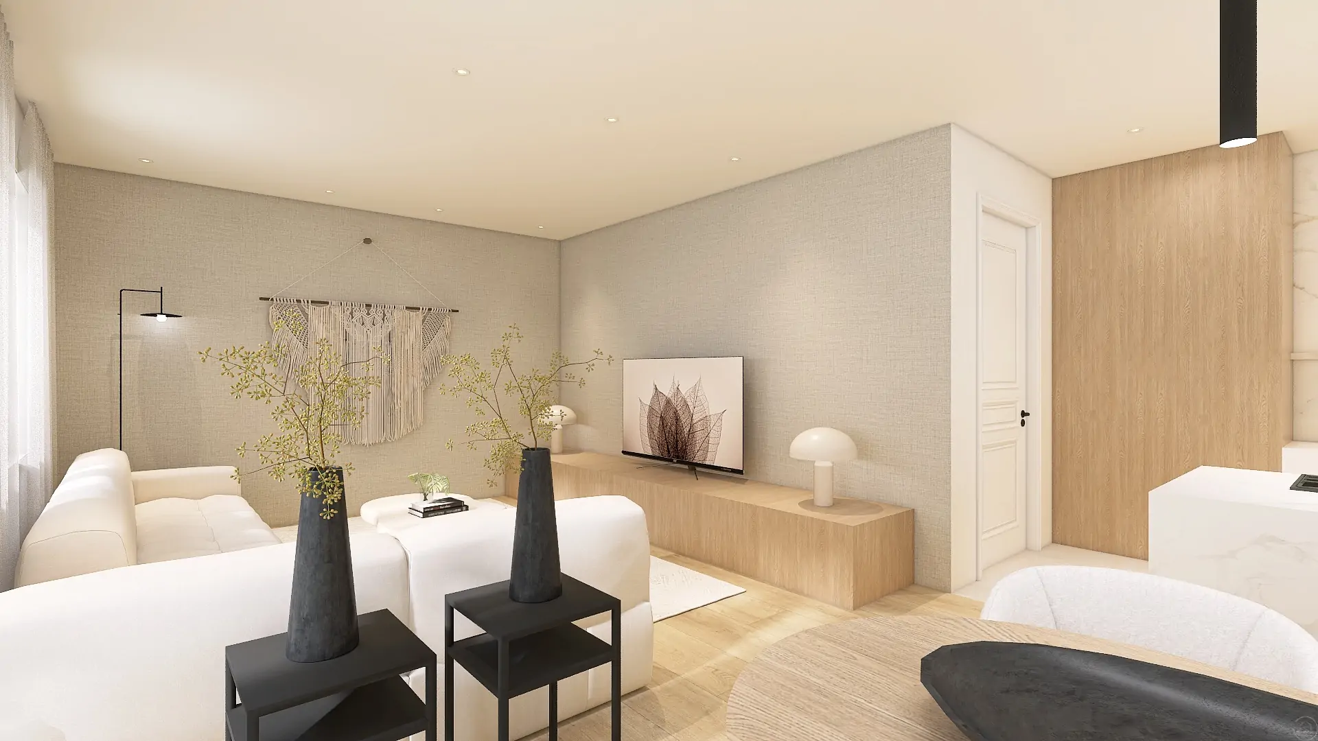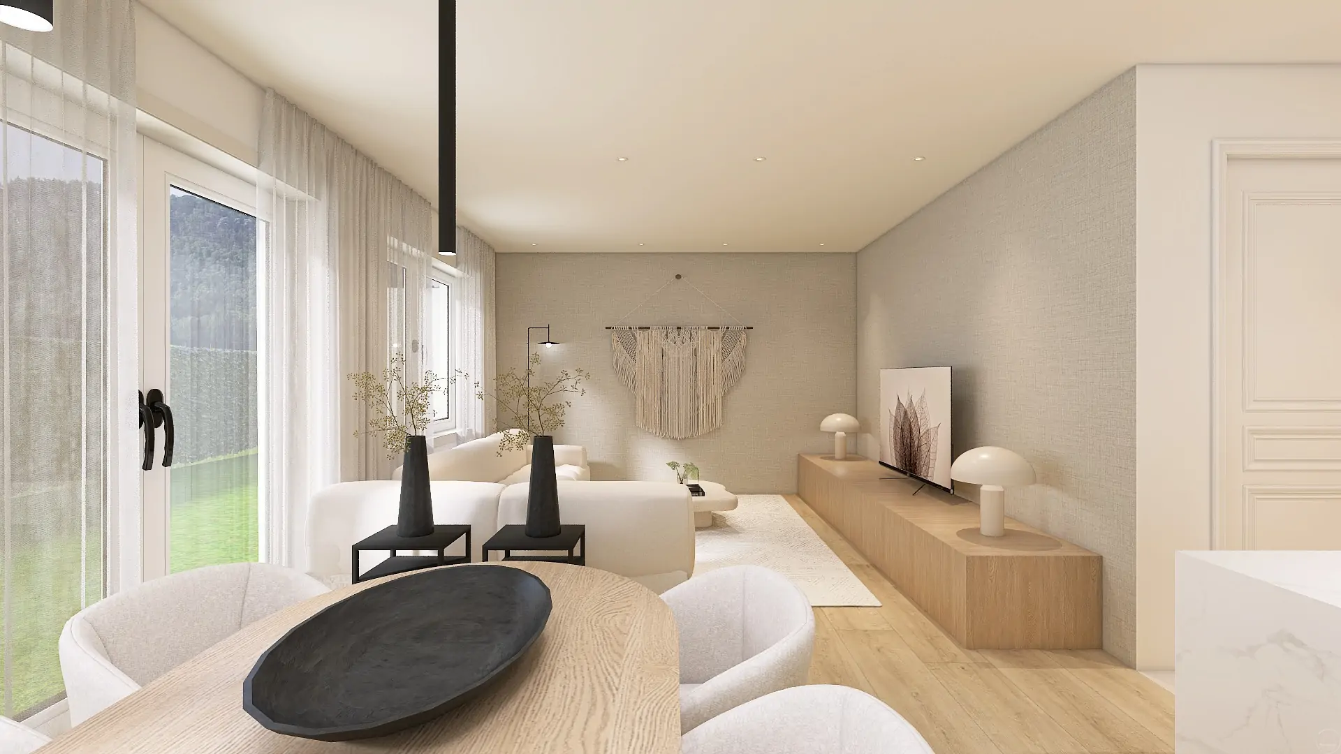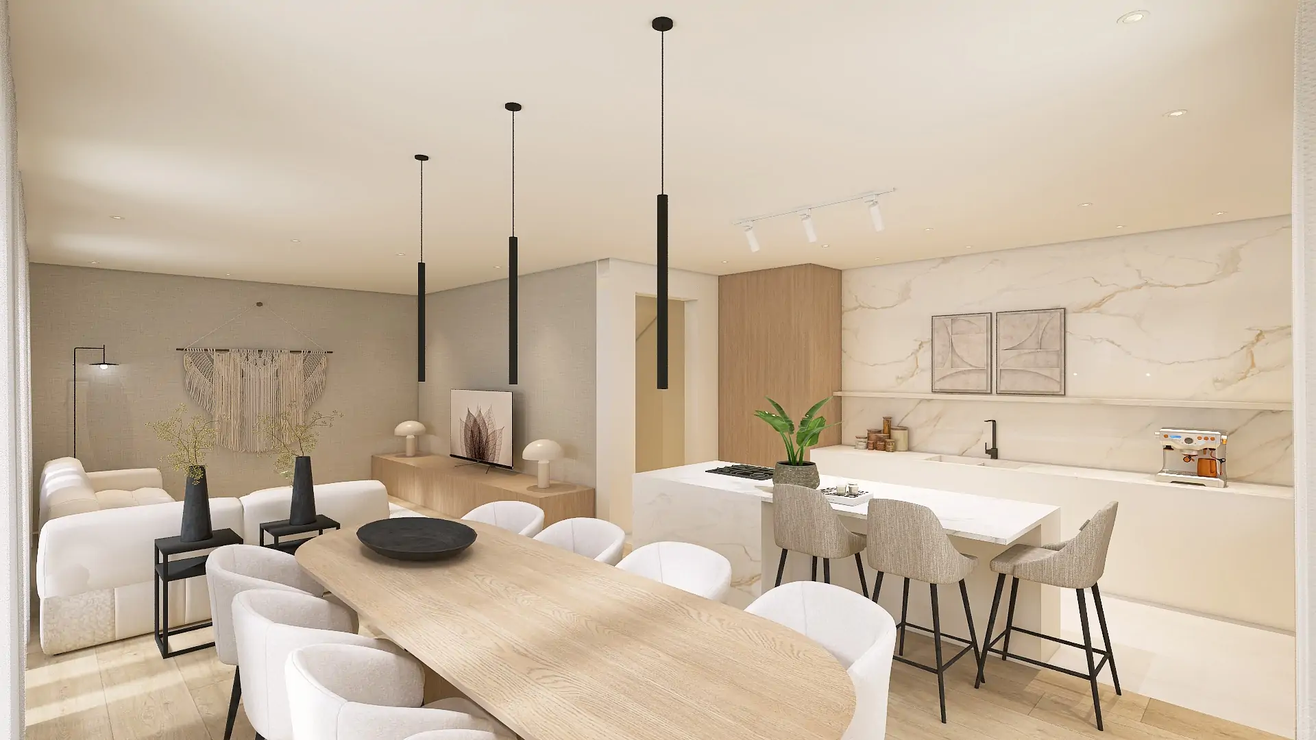 Betaalbaar interieurontwerp 3D eensgezinswoning - woonkeuken ontwerp - Forme - Jesper - Richmond Interiors - Sevn - Arte Wallcovering - Hometolife3D