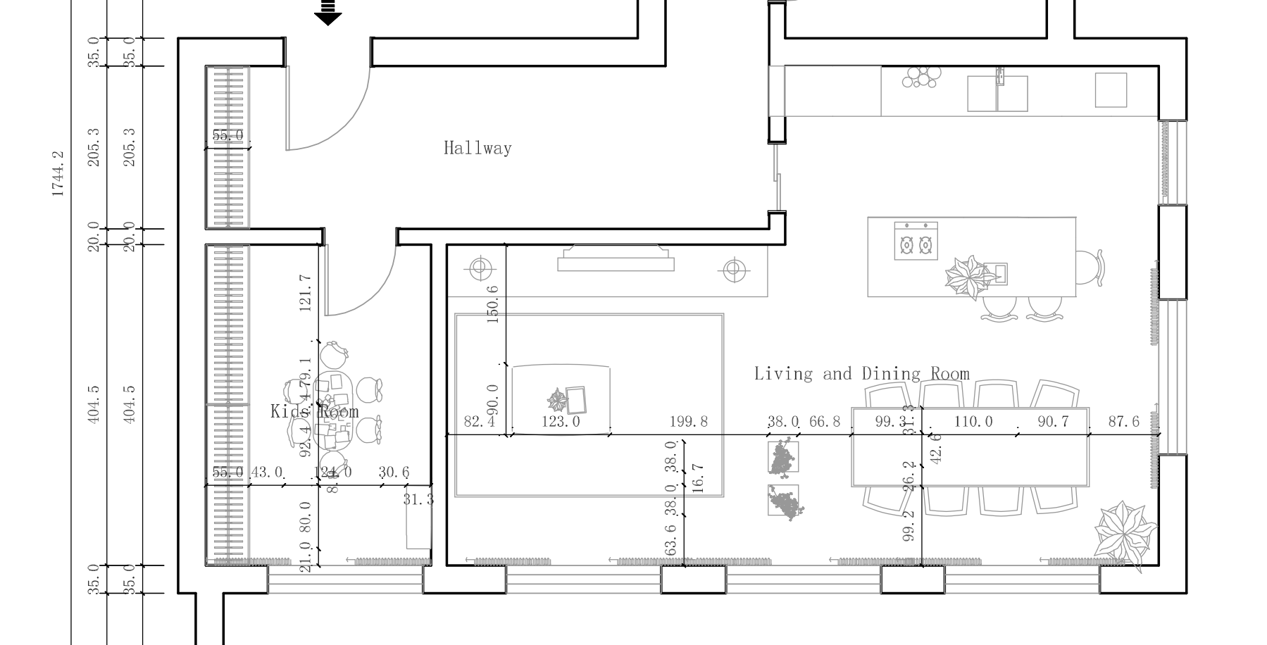 Keuken, eetkamer, woonkamer