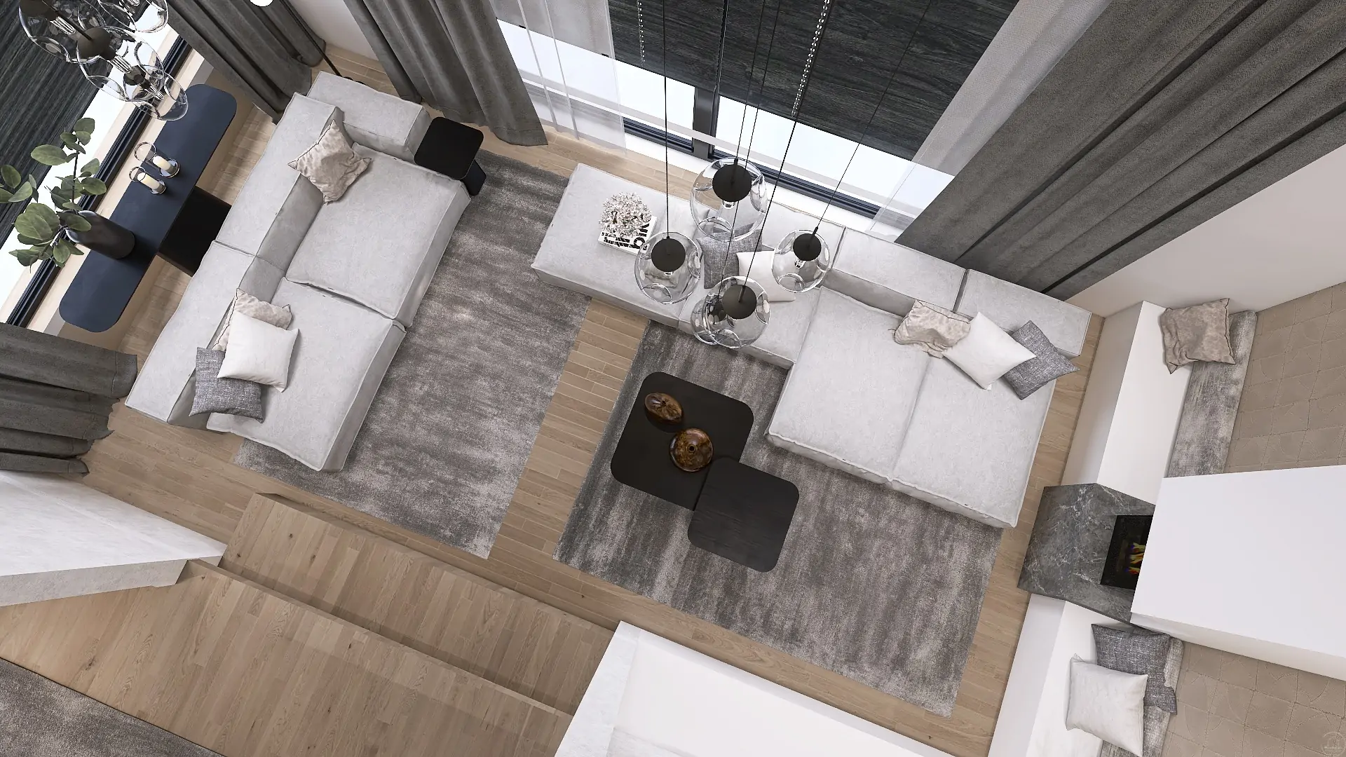Interieurontwerp met verlaagde woonkamer - Richmond Interiors - Room108 - Eleonora - Forme - Hometolife3D