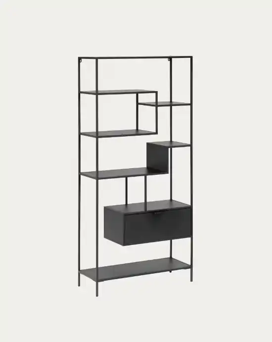 Wandrek uit de Shantay-collectie, ideaal voor liefhebbers van de industriële trend en kleine ruimtes. Vertrouw op zwart geverfd staal en plaatstaal om uw huis te versieren. Nooit eerder was de donkere kant zo licht van stijl.